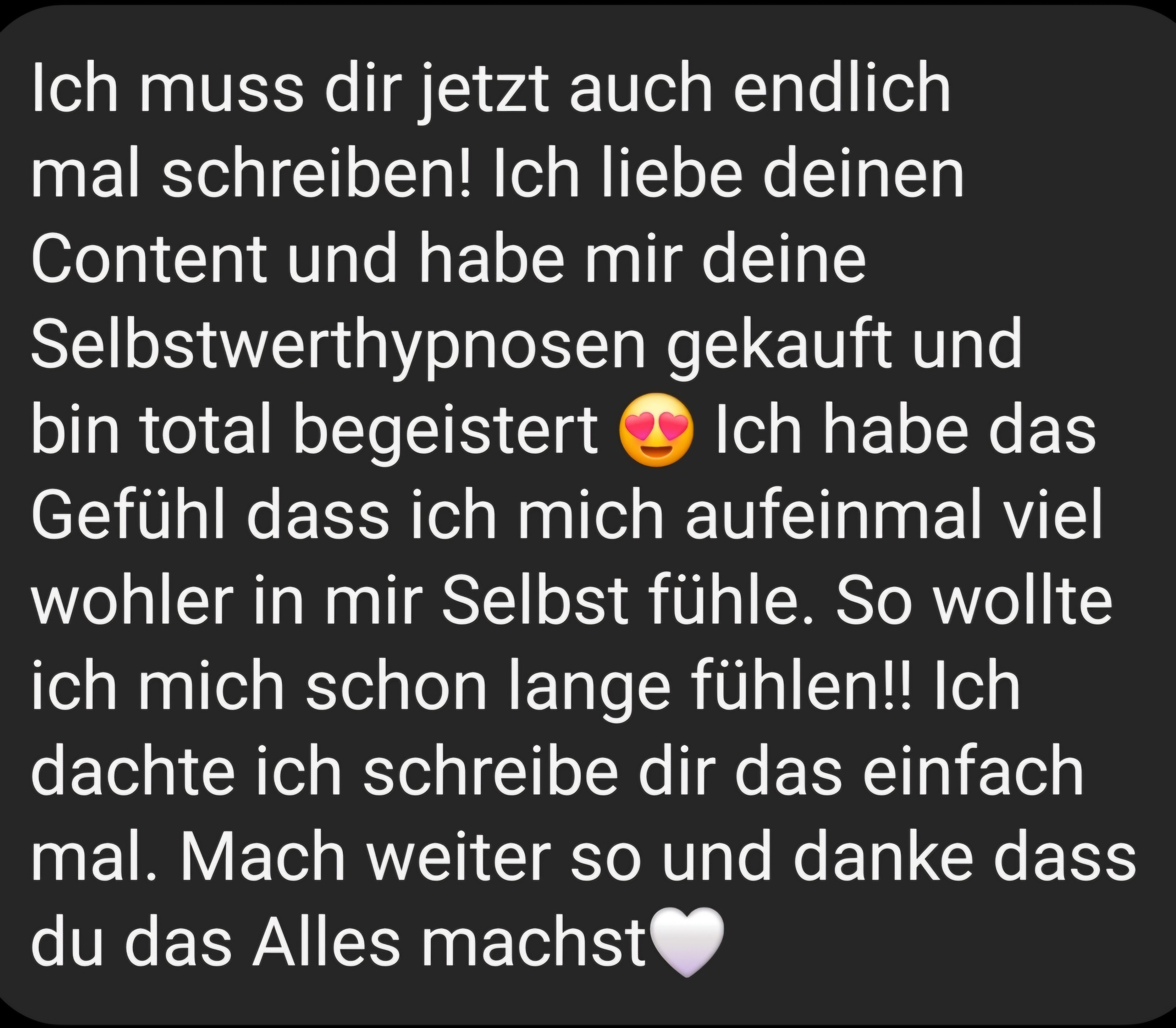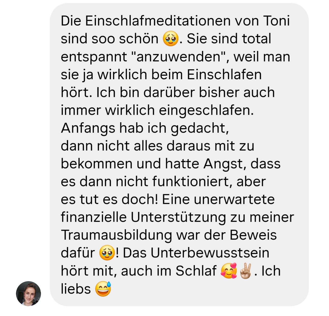 "Ich habe mehrere Hypnosen von Toni erworben – und angefangen hat alles mit der Hypnose zum Thema Selbstliebe.